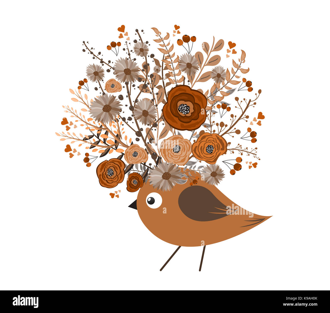 Drawing Pen Bird Face Macaque Portrait With Beautiful Flowers On